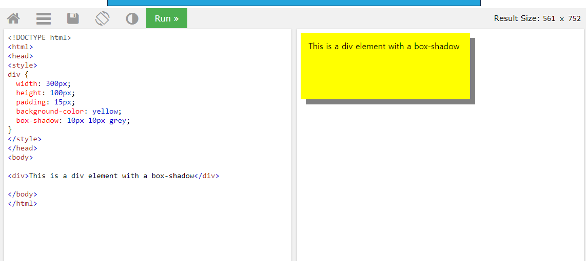 Try it Yourself 버튼을 누르면 직접 코드와 화면을 실행해볼 수 있습니다.
