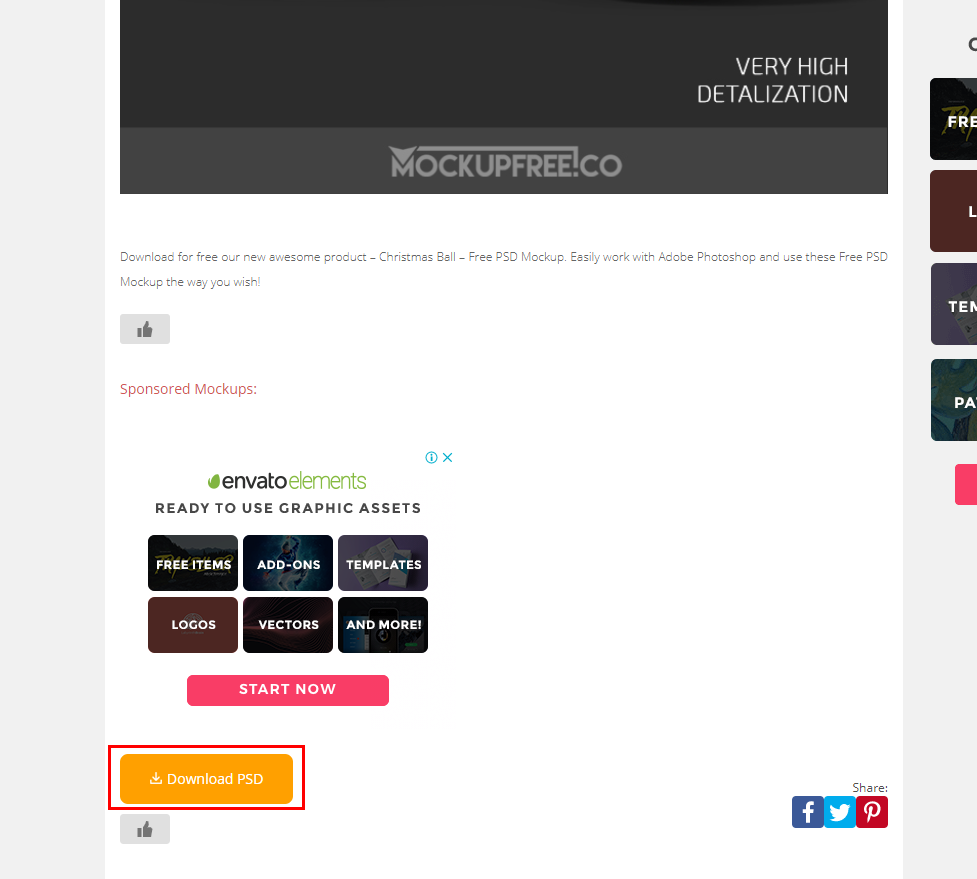 다운로드가 되었느냐.. 아직 안되었습니다. 또다시 링크를 타고 어디론가 들어갑니다만, 무료로 받는 거니까 이 정도 수고로움은 감수해봅시다. 한번 더 새로운 페이지가 열리면 당황스러울 수도 있지만 아래로 스크롤을 쭉쭉 내려줍니다. 드디어 다운로드 버튼이 보일 것입니다. Download PSD 버튼을 클릭해봅시다.