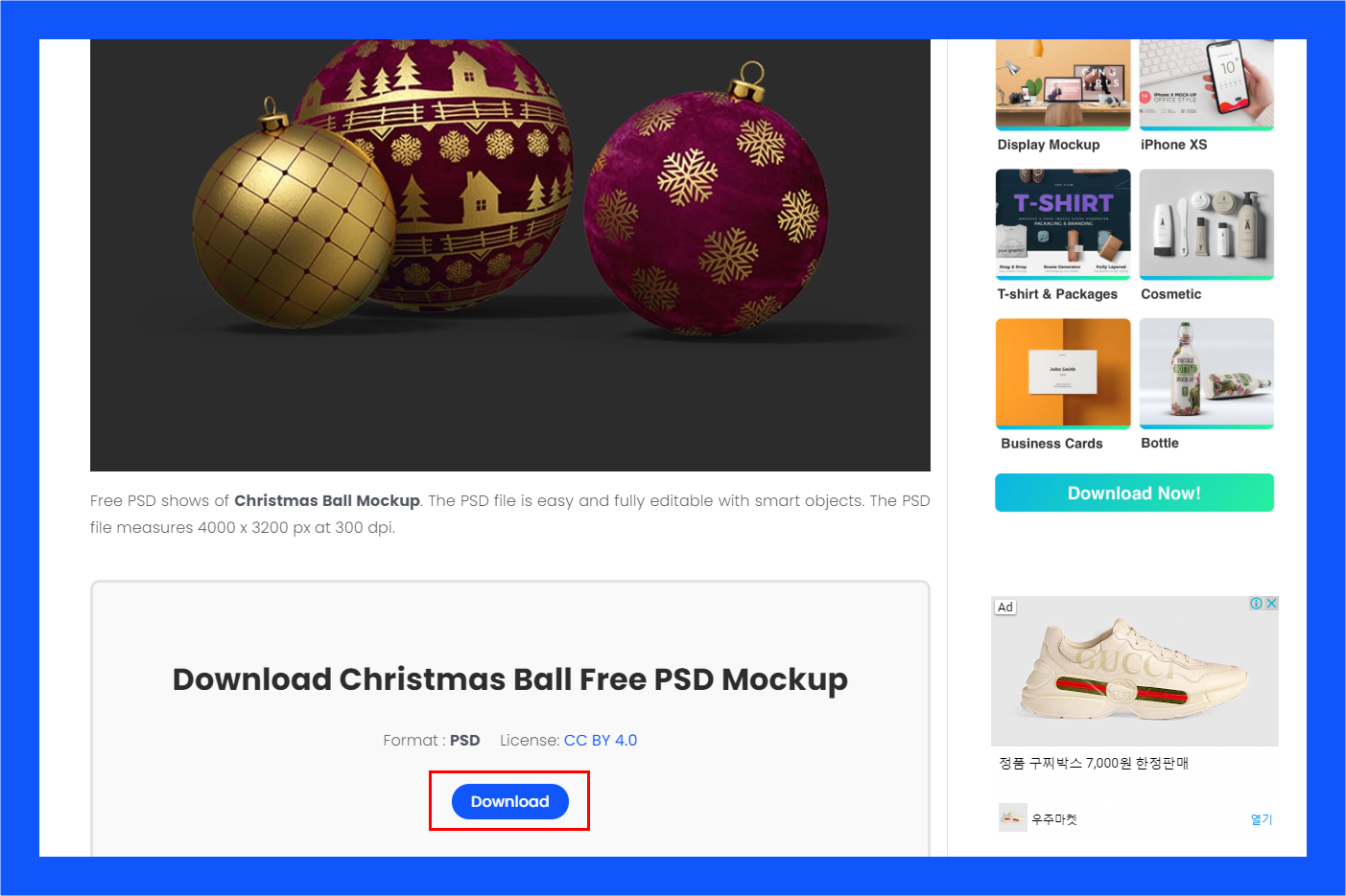 이 크리스마스 볼 목업이 괜찮네요. 이 목업을 선택해보겠습니다.