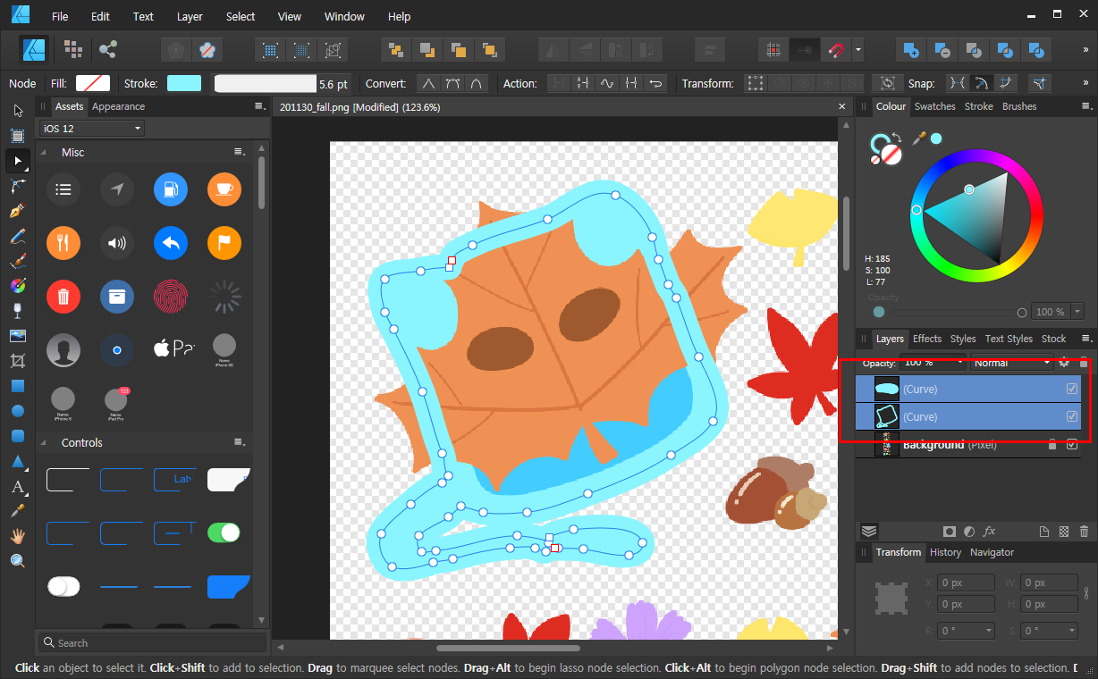 이럴 때 두 도형을 합치는 방법이 있습니다. 우선 나눠진 레이어를 모두 선택해줍니다.