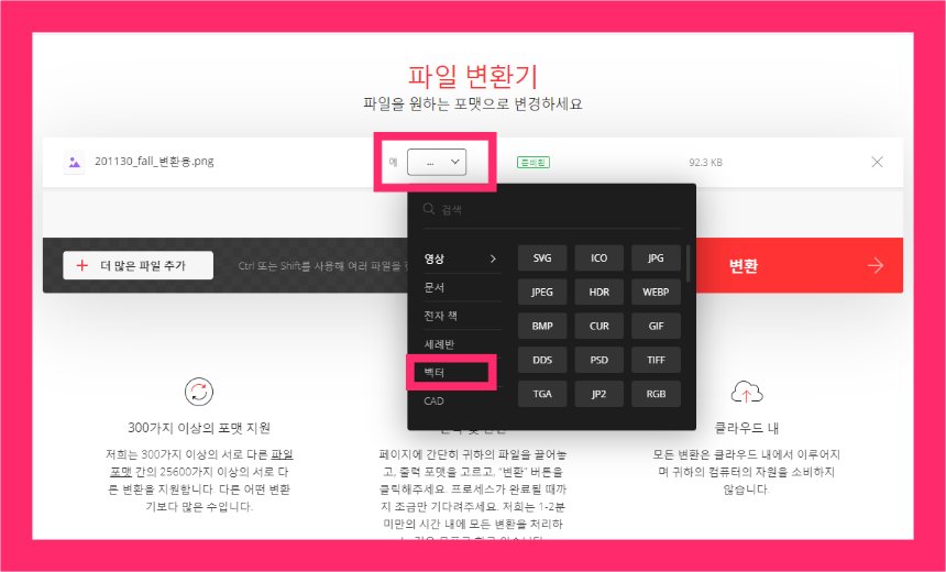 - 백터 카테고리를 고르면 더 쉽게 고를 수 있습니다.