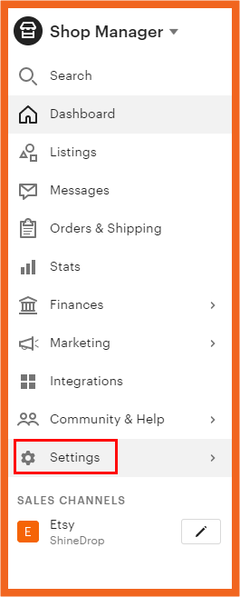 - 샵 매니저에 들어오면 왼쪽에 있는 메뉴 중 가장 아래에 있습니다.