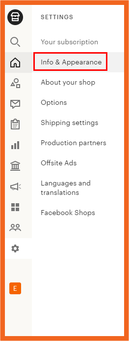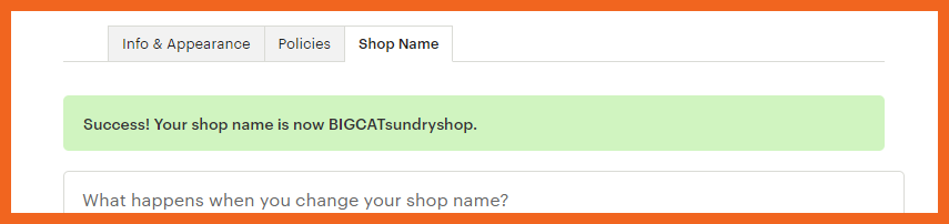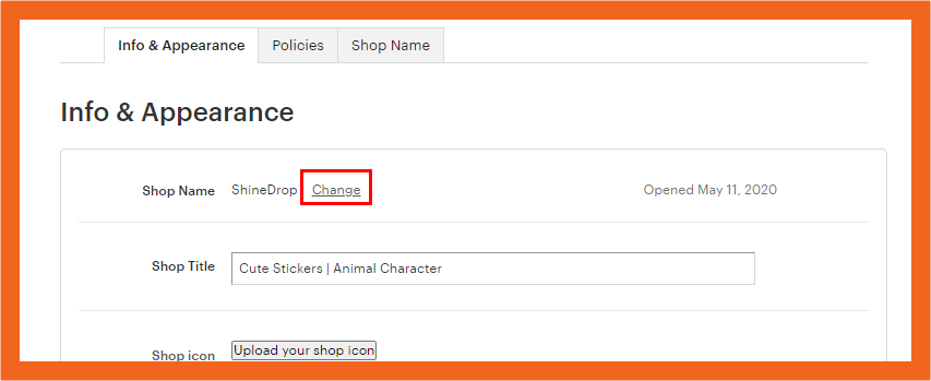 ② Info & Appearance 탭에서 Shop Name 에 있는 Change 버튼을 누른다.