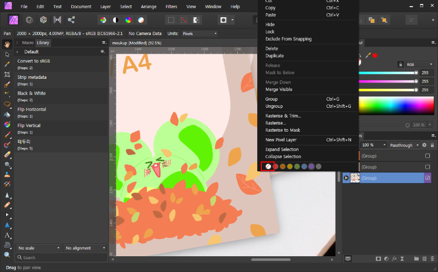 어피니티 포토에서 레이어 색을 변경해보겠습니다.