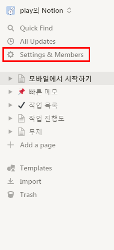 - 세팅 창 좌측에 메뉴가 있습니다.