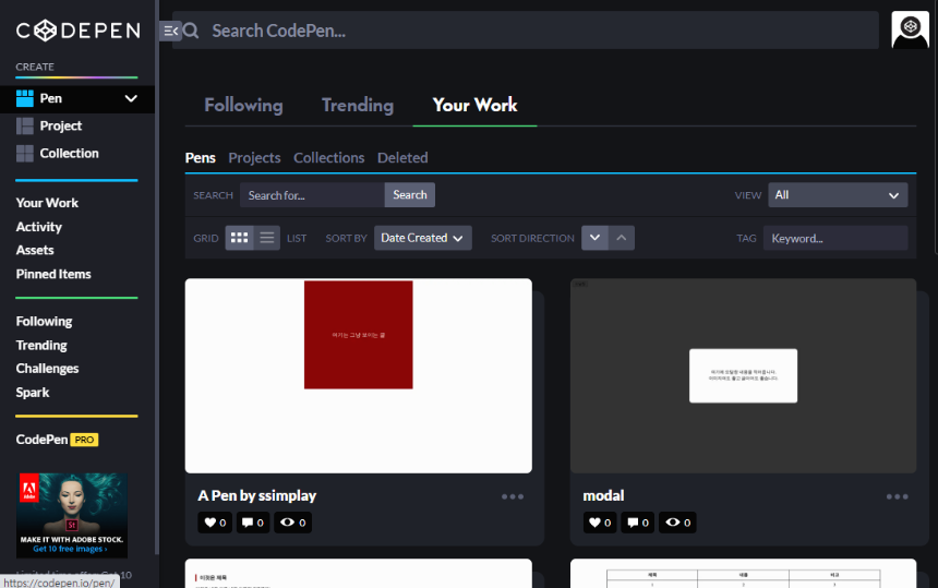 - 위의 링크를 이용해 코드펜에 접속해주세요.