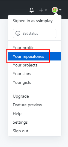 - 오른쪽 상단의 내 프로필 아이콘을 클릭해 Your repositories 메뉴를 선택합니다.