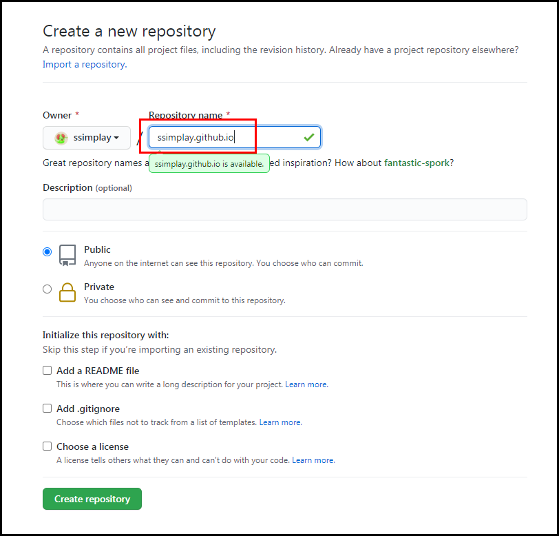 - 간단합니다. 그냥 github.io 주소를 저장소 이름으로 등록해주세요.