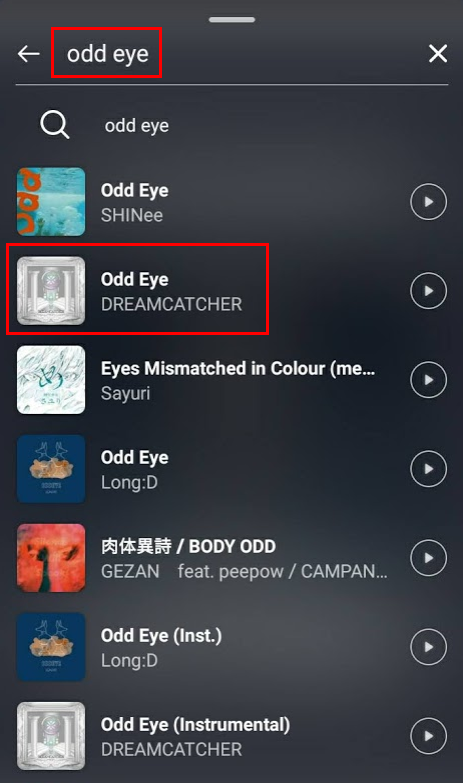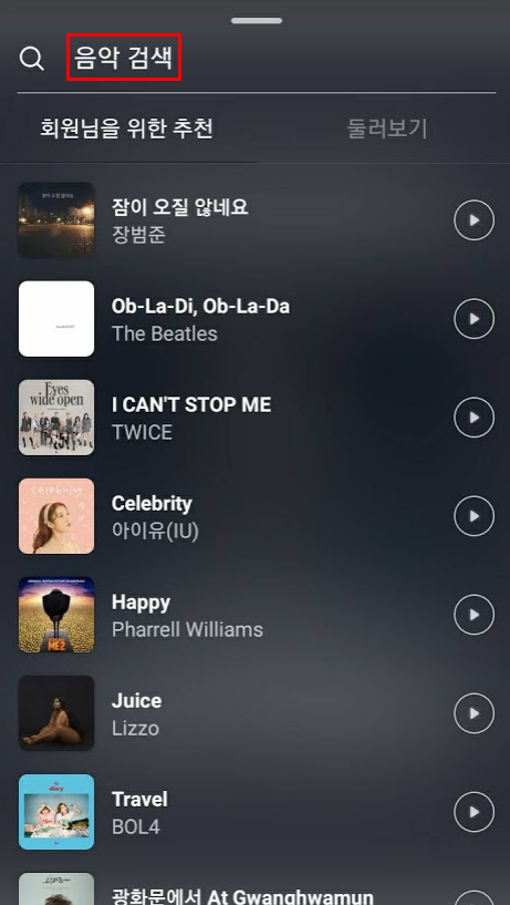 - 제목을 검색하고 원하는 음악을 선택합니다.