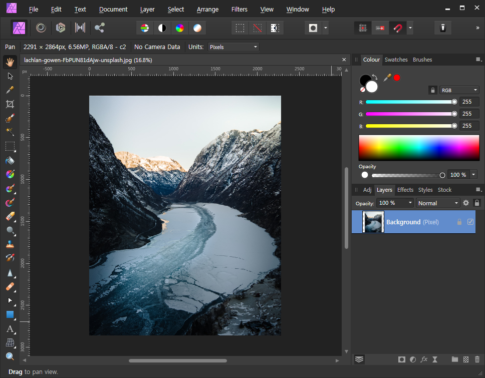 - 캔버스의 사이즈가 자동으로 원본 크기가 됩니다.