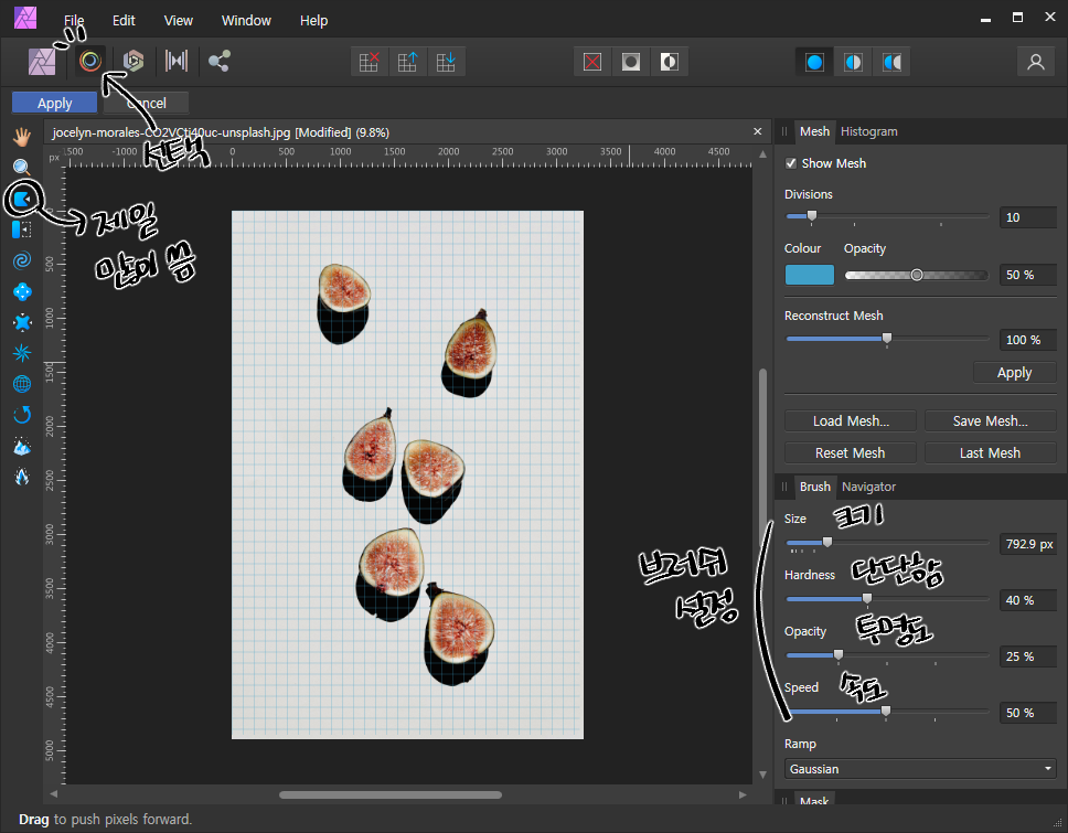 - 영어로는 리퀴파이, 한글로는 픽셀 유동화라고 하는 이 기능 어디에 있느냐
