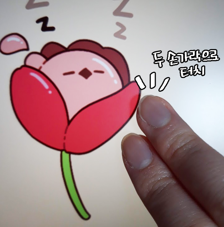 - 손가락 세 개를 이용해 좌우로 마구 쓸어줍니다.