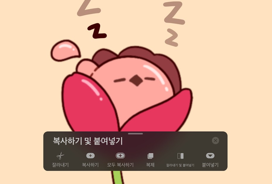 - 손가락 세 개를 아래로 쓸어주시면 복사 붙여 넣기 창이 뜹니다.