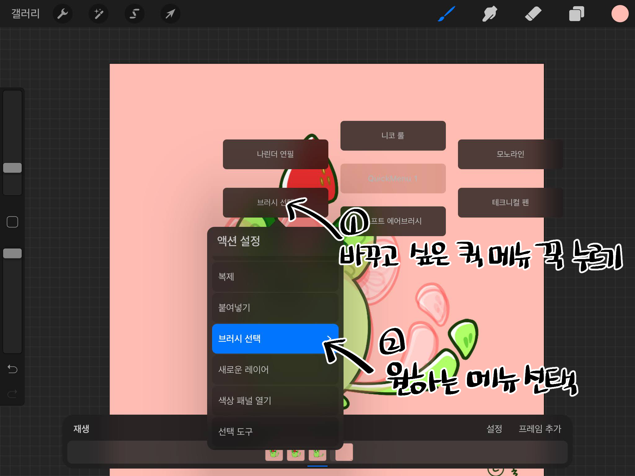 퀵메뉴 액션은 정말 다양하게 선택이 가능해서