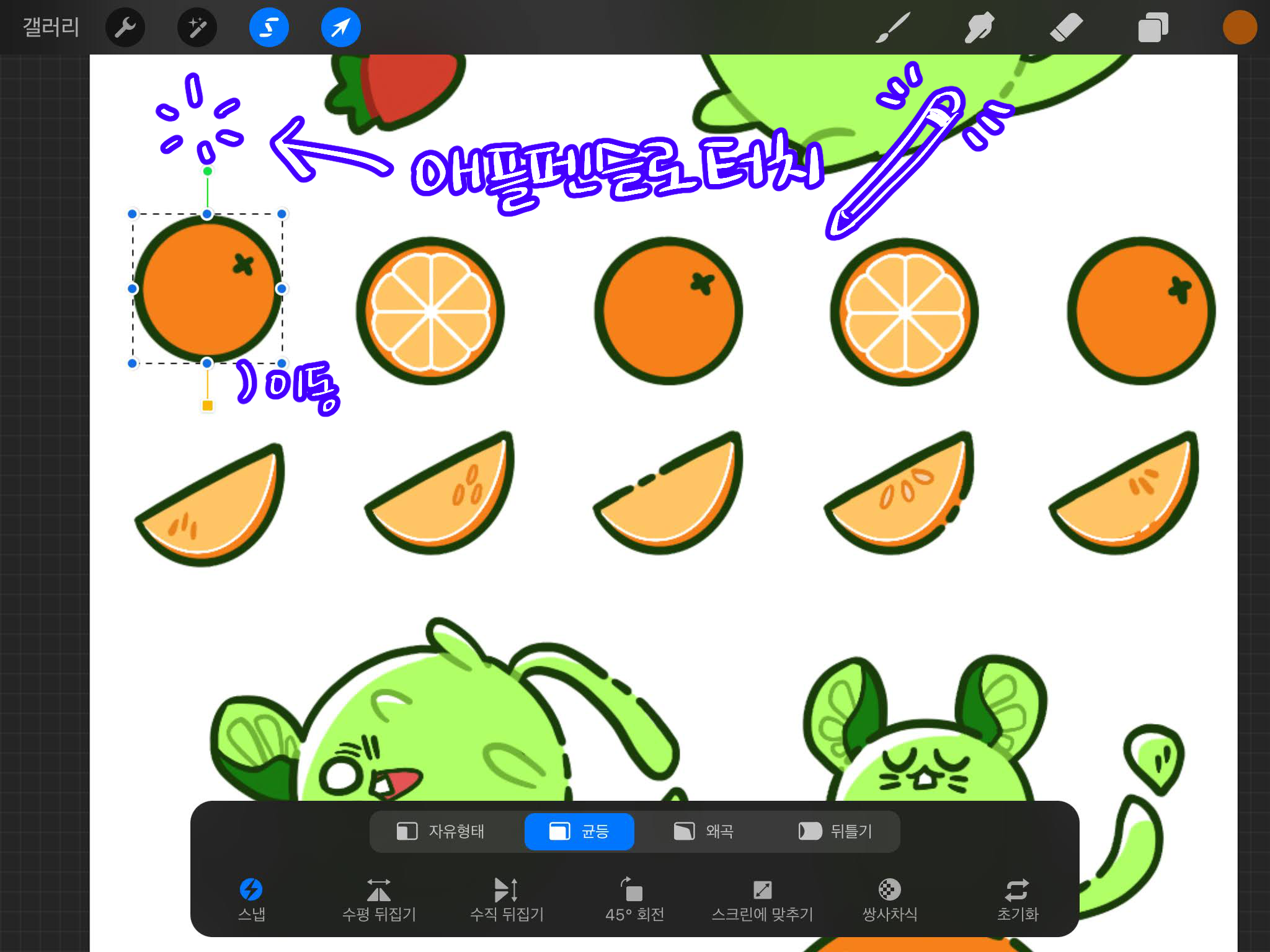 - 애플펜슬을 들어 이동하고 싶은 방향으로 톡톡톡 터치를 해줍니다.