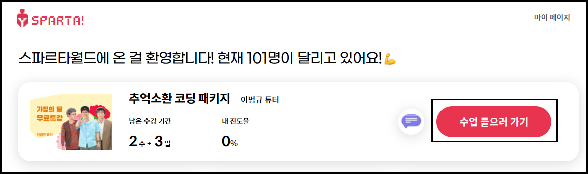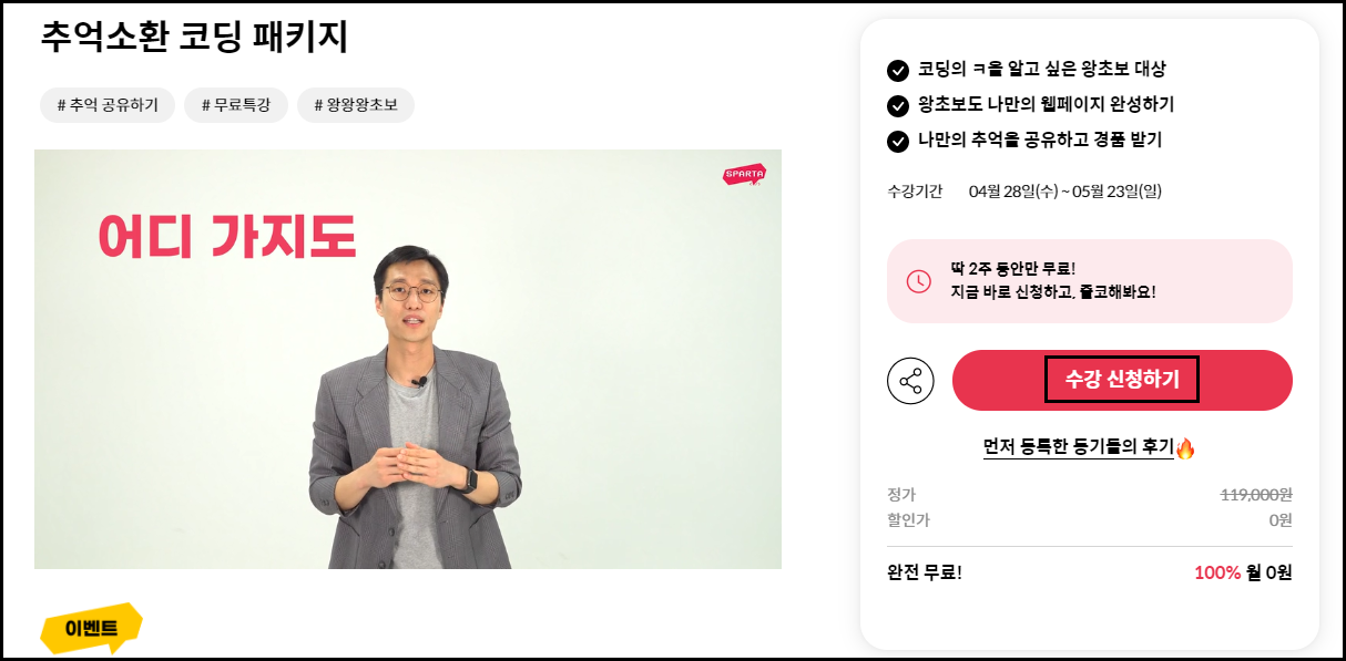 - 스파르타코딩클럽에서 가정의 달을 맞아 무료특강 이벤트를 진행 중이에요.