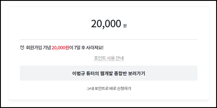 - 다만 이 기초 패키지만 들을 수 있어서 조금 아쉬웠어요. (다른 강의는 포인트를 모아 모아 구매해봅시다 ㅋㅋ)