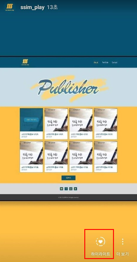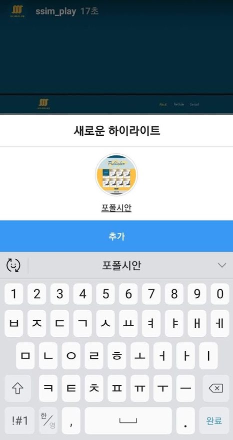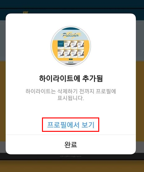이렇게 팝업창이 뜬다면 정상적으로 하이라이트에 업로드된 것입니다.