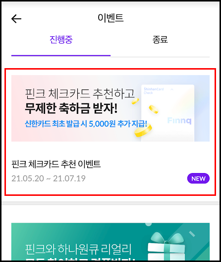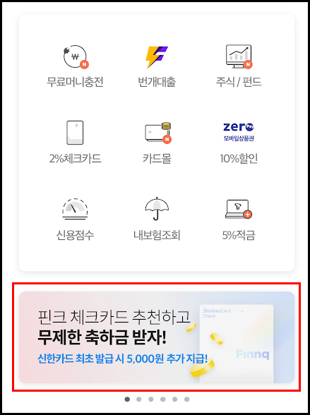 - 핀크 체크카드 추천 이벤트 배너를 찾아 들어갑니다.