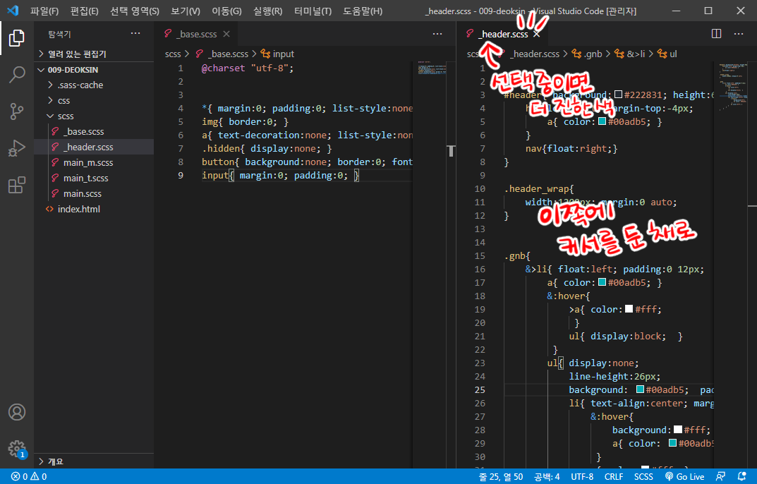 비주얼 스튜디오 코드에서