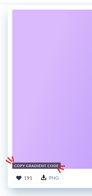 - 그라디언트 화면에 마우스를 올리면 왼쪽 아래 코드를 카피할 수 있게 버튼이 나타납니다.