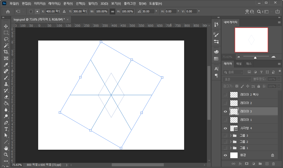 - 그냥 도형을 회전시킬 때와 동일하게 해 주시면 됩니다.
