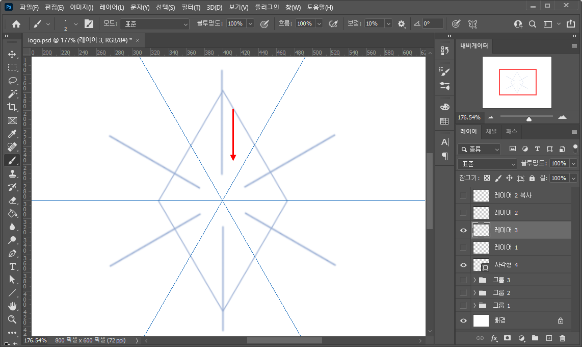 - 이렇게 대칭자가 그려졌다면 이제 본격적으로 그려주시면 되는데요.