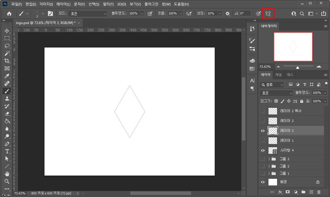 - 대칭자는 브러시 도구에서만 생기더라구요.