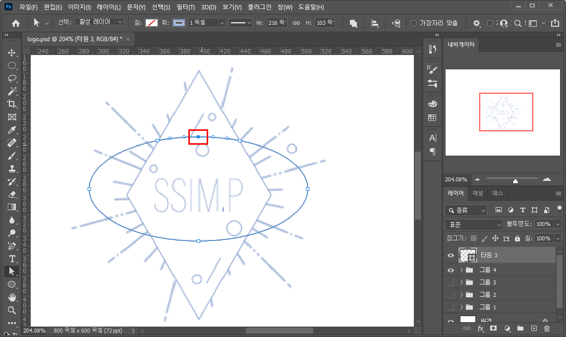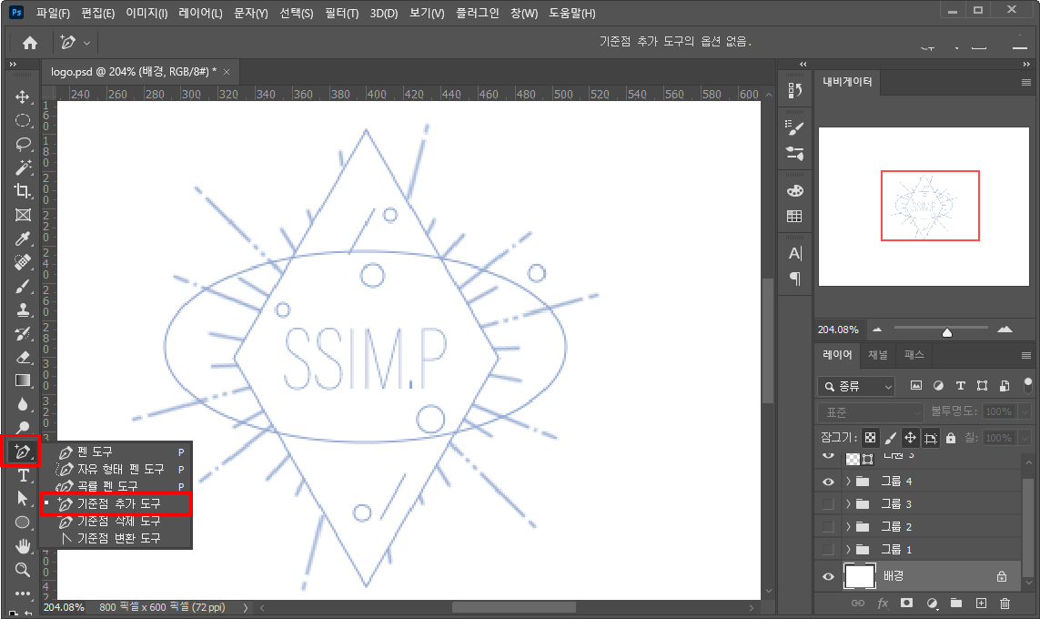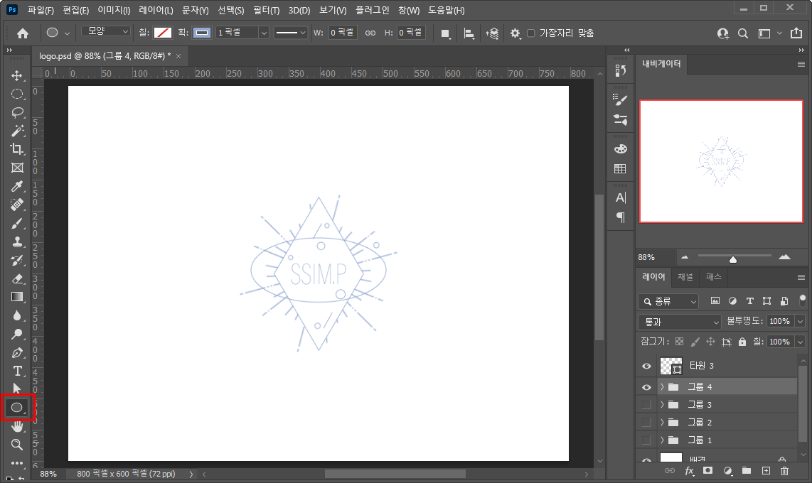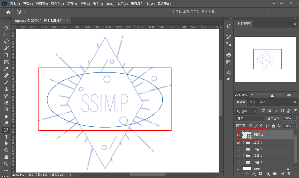 - 예시로 작업중인 로고를 가져와봤습니다.