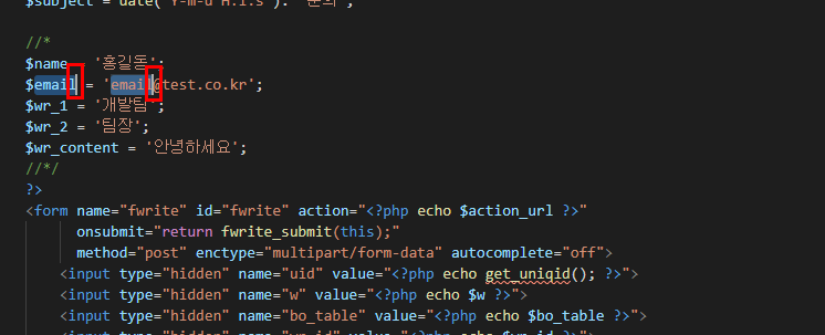 - 저 email이라는 두 단어 모두 커서가 있는 것 보이시죠?