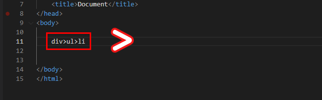 - 사용 방법은 div 태그 안쪽에 ul 태그를 넣고 싶을 때 [div>ul]이라고 적고 [Tab] 키를 눌러주세요.
