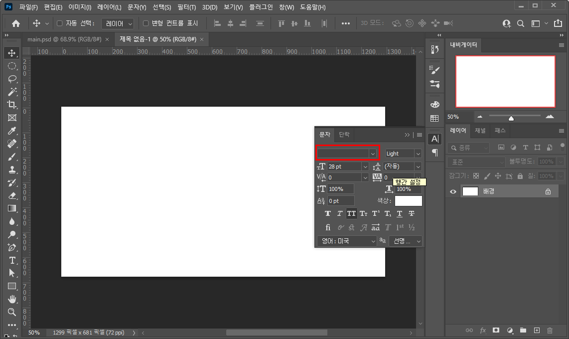 - 이렇게 다운로드한 서체를 컴퓨터에 등록했다면 포토샵에서 사용할 수 있습니다.