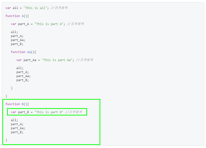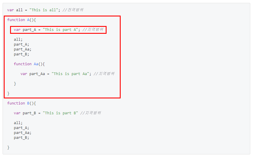 var part_A = "This is part A"; //지역범위