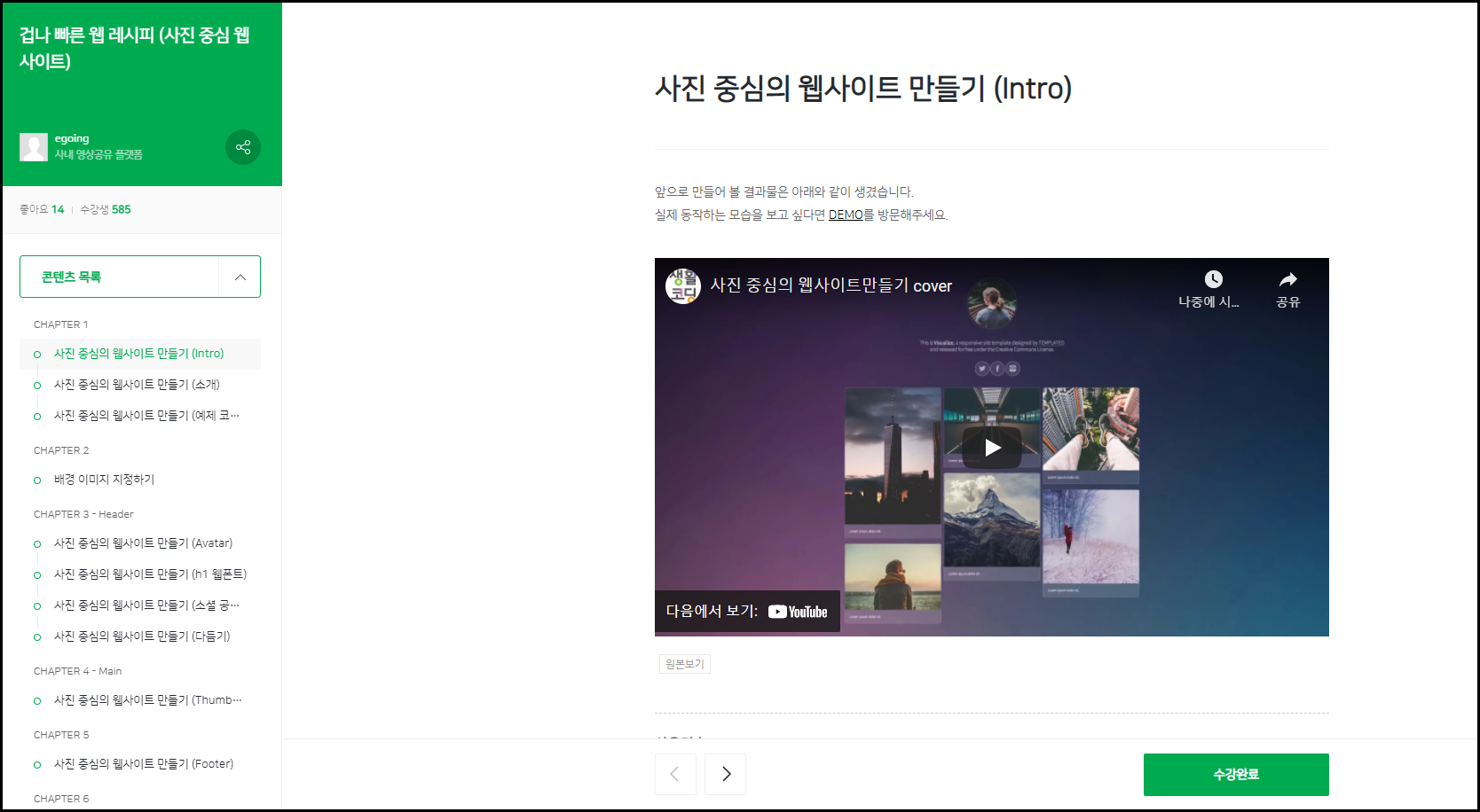 - 강의를 다 들은 다음에는 수강완료를 누르는 것을 잊지 말아 주세요.
