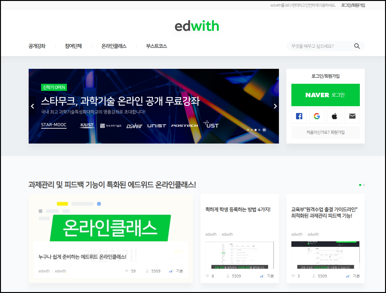 - 풀네임은 에듀케이션위드로 네이버에서 제공하는 온라인 강좌랍니다.