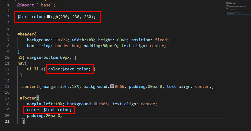 - 이렇게 그룹에 속하지 않으면 모든 그룹에 변수가 적용됩니다. 예시 코드에도 nav와 footer 모두 적용되었죠.