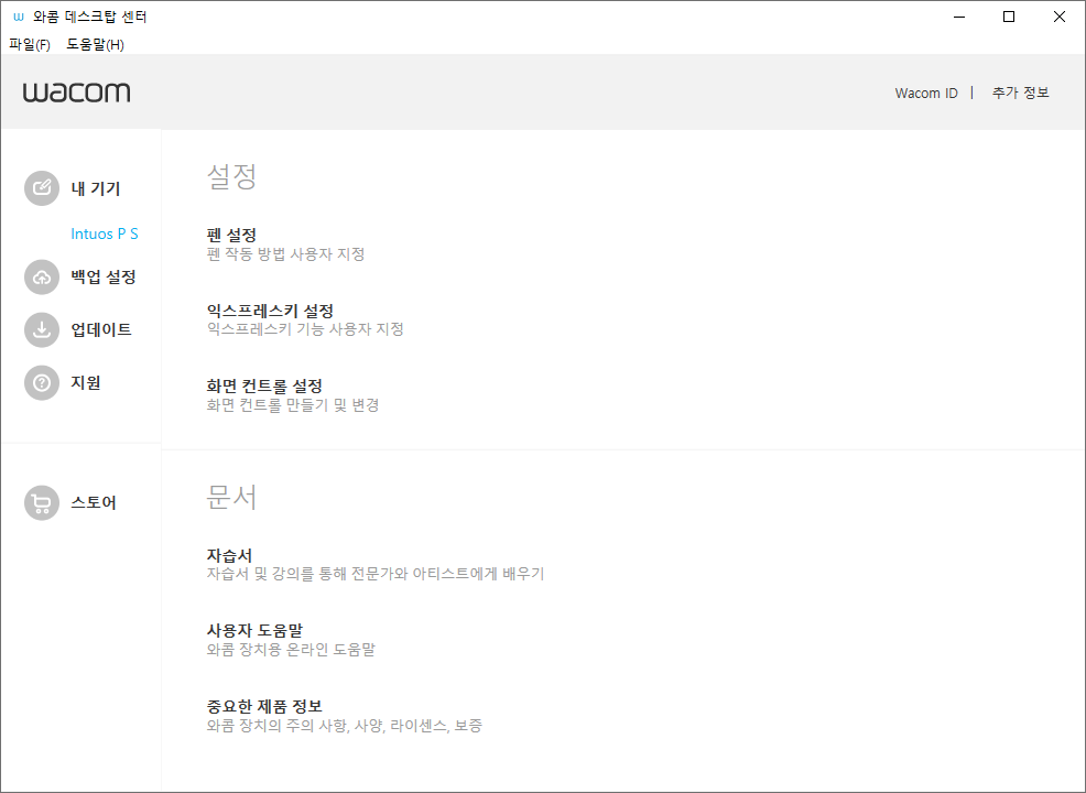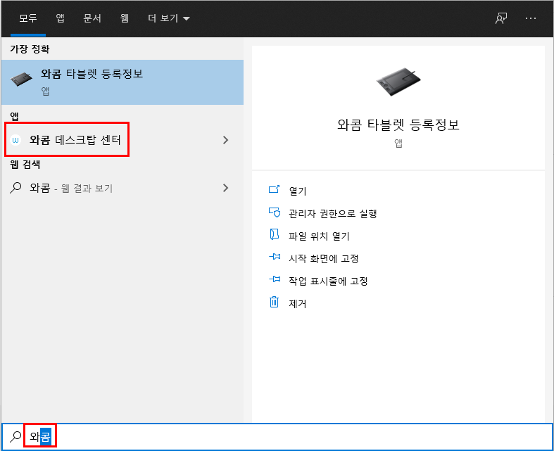 - [와콤 데스크탑 센터]라는 프로그램을 열어주세요.