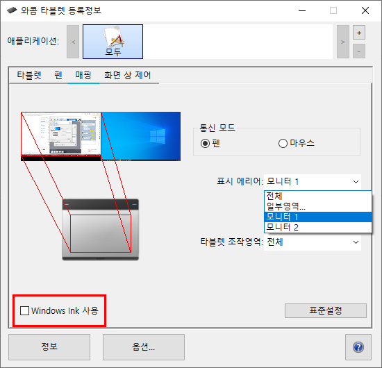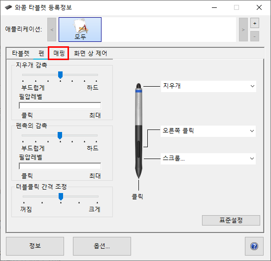 - 이런 펜 설정 화면이 나오면 [매핑] 탭을 열어주세요.
