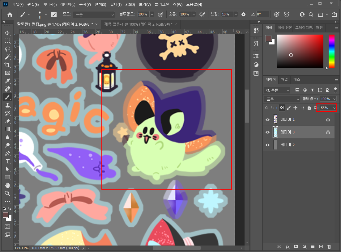 10월에는 할로윈이 있죠. 할로윈 스티커를 만들어보는 제작 과정을 담아보려고 합니다. 그 첫번째 날~ 오늘은 러프를 해봤어요. 1. 위치 잡기 ① 캔버스 사이즈 정하기 - 먼저 스티커의 사이즈를