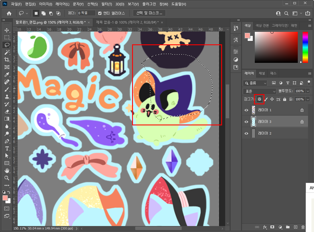 - 테두리를 만든 레이어에 [투명 픽셀 잠그기]를 걸어줍니다.