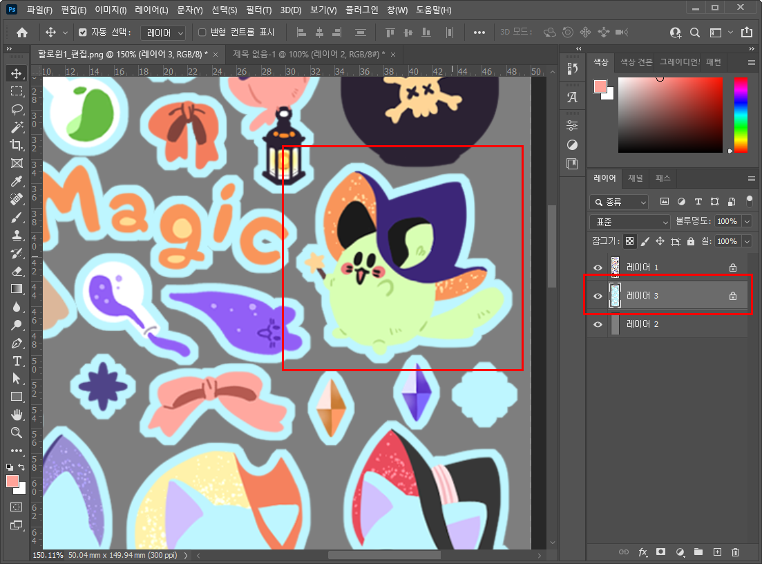 - 그리고 만든 새 레이어에 그림보다 큰 영역으로 테두리를 만들어줍니다.