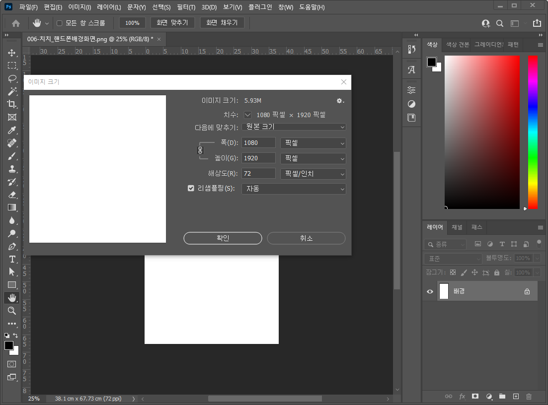 - 모바일 배경화면의 사이즈는 [1080*1920(px)]로 작업합니다.