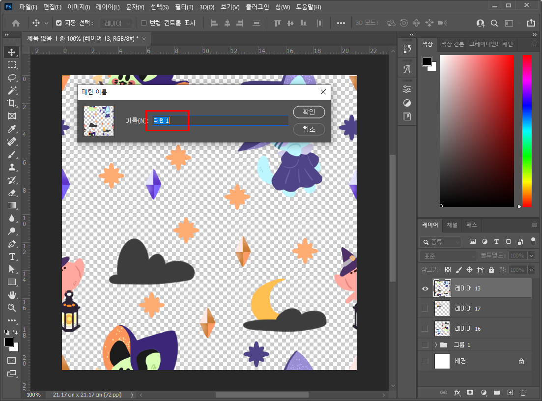 - 패턴 이름이라는 창이 뜰 거예요.