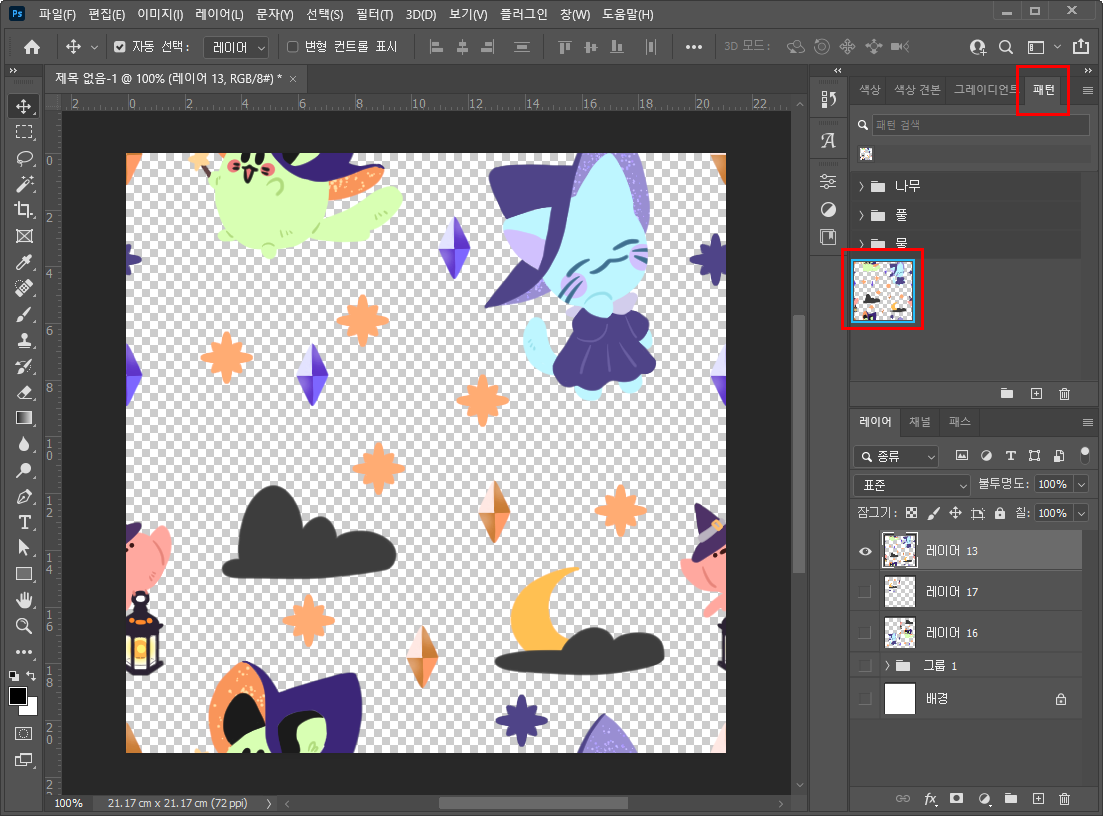 포토샵으로 끝나는 지점이 이어지는 패턴을 만들어볼 거예요.
