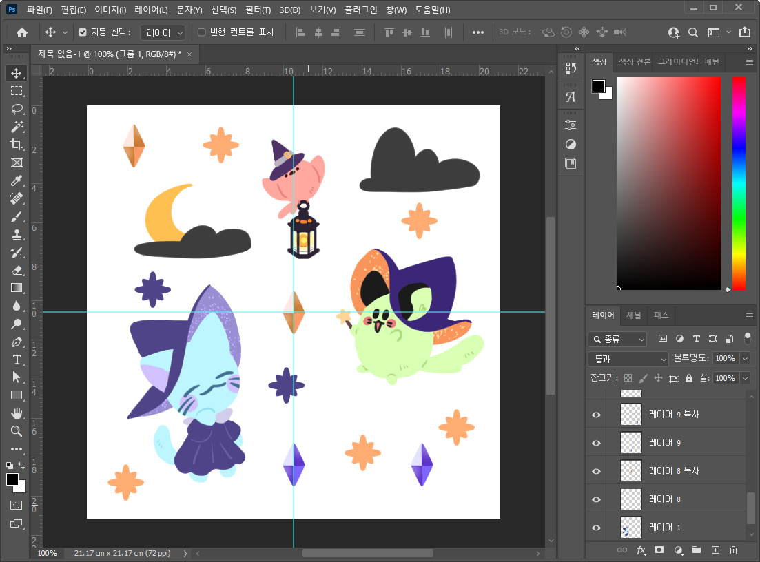 - 가로세로 정중앙에 가이드라인을 만들어주세요.