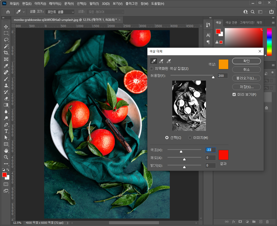 특정 색만 선택해서 변경하고 싶은 경우가 있어요.
