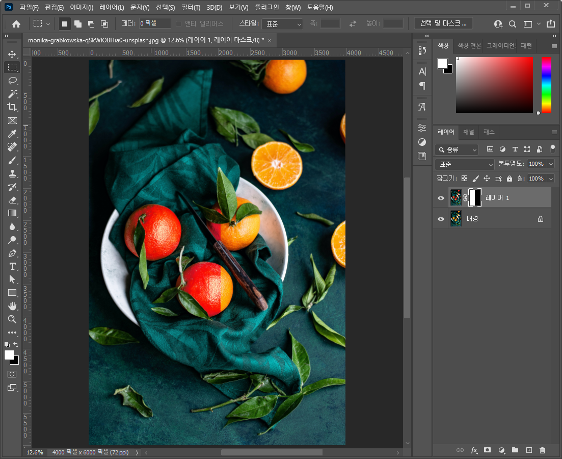 - 색을 선택했는데 화면에 흰 부분이 저렇게 조금일 수 있어요.