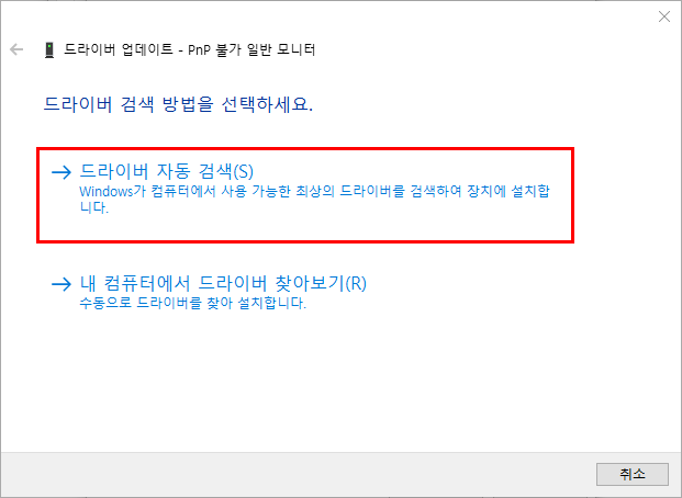 - [드라이버 자동 검색]을 선택합니다.