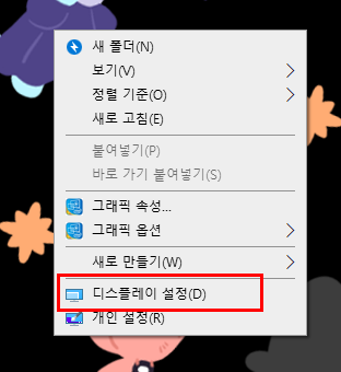 - 바탕화면에서 [마우스 우클릭 > 디스플레이 설정]을 눌러주세요.