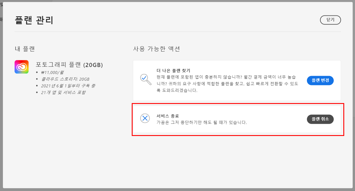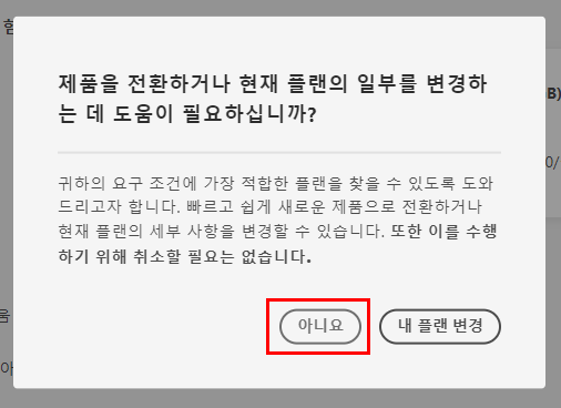 - 하지만 굴하지 않고 플랜 취소를 눌러줍시다.